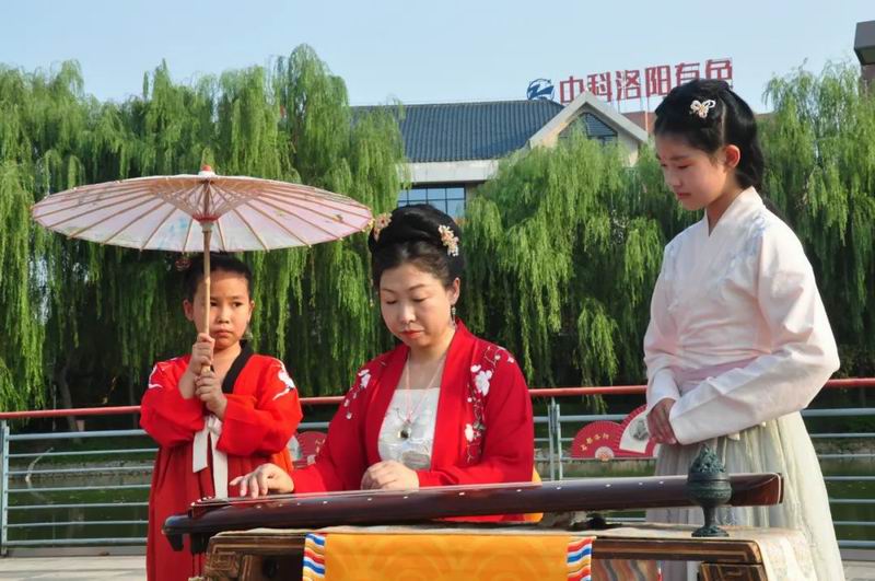 今天是8月4日,農歷七月初七乞巧節。下午17時許,中國華僑國際文化交流基地炎黃科技園的湖心平臺上格外熱鬧,一場別開生面的乞巧節傳統文化大集活動正在這里舉行。